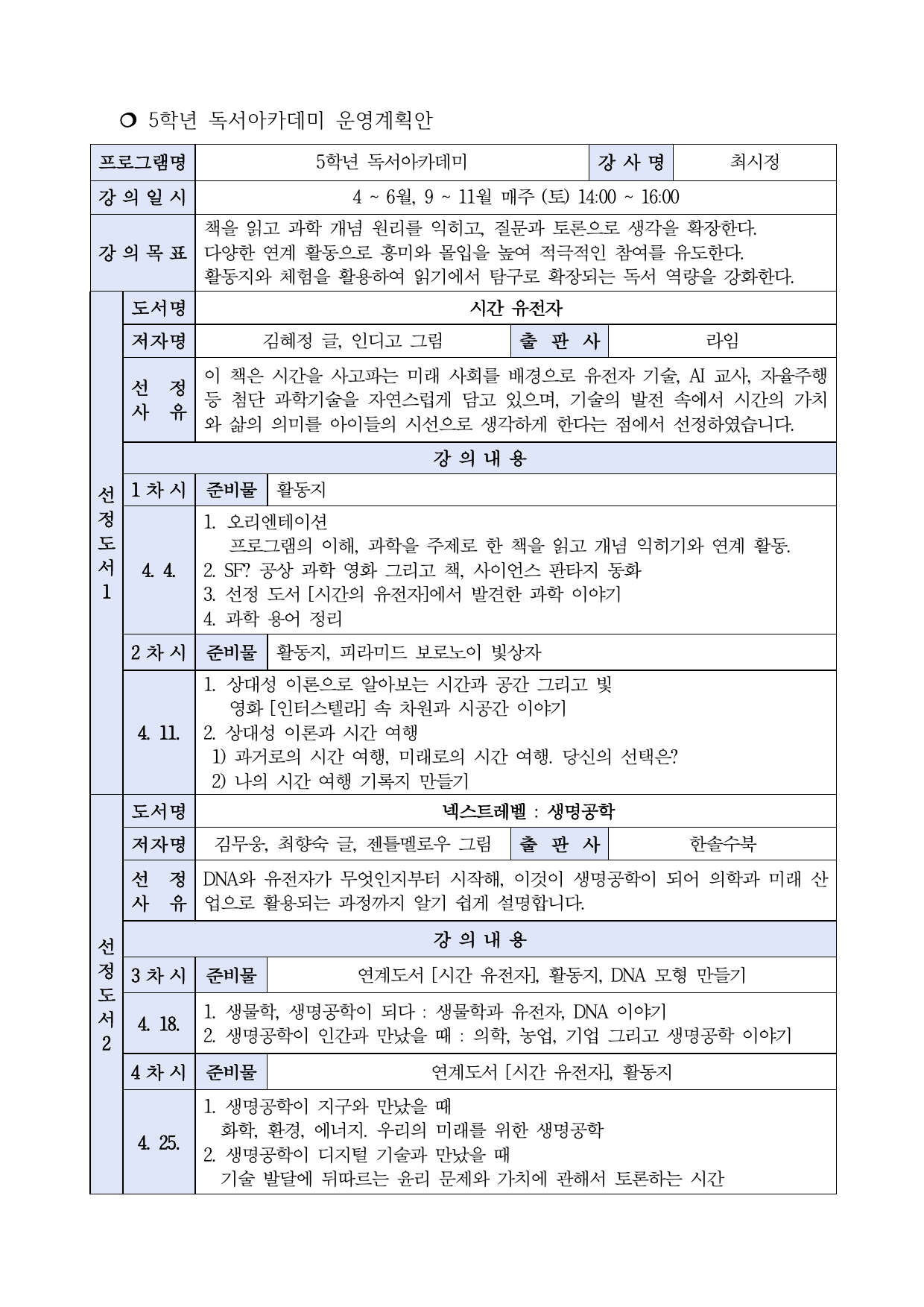 PDF문서2026년 독서아카데미 상반기 강의계획서(5학년).pdf